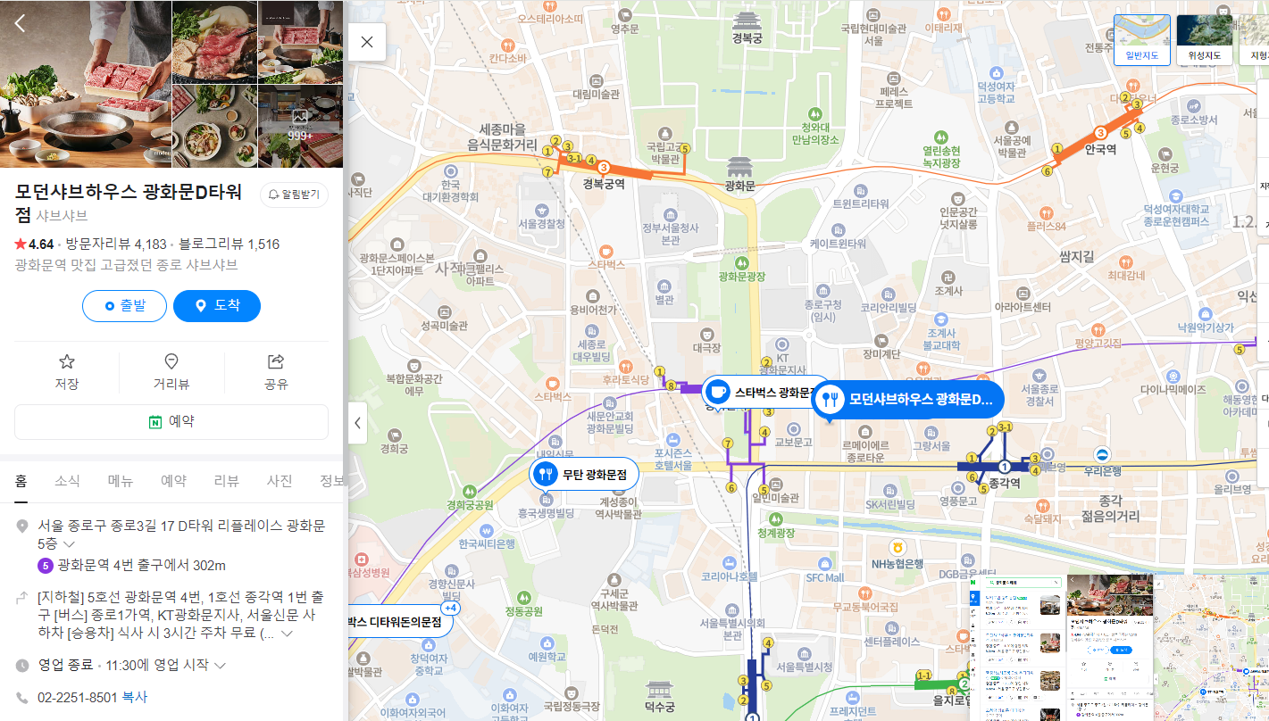 1. 광화문 맛집 모뎐샤브하우스 위치