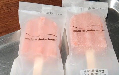 그리고 후식으로는 아이스크림도 주는데, 딸기맛도 있고 파인애플 맛도 있습니다.