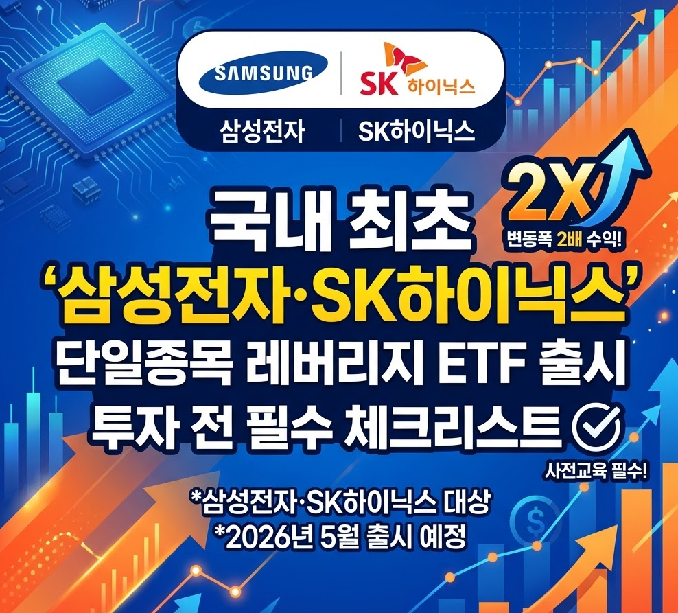 2026년 5월부터 국내 주식시장에서도 삼성전자와 SK하이닉스 단일종목 레버리지 ETF 투자가 가능해집니다. 해외 직구 없이 국장에서 즐기는 2배 레버리지의 장점, 1시간 추가 심화 사전교육 이수 방법 및 투자 주의사항을 지금 바로 확인하세요!