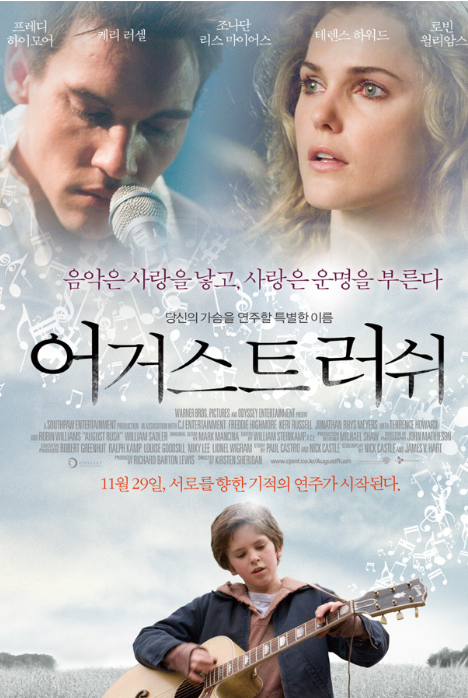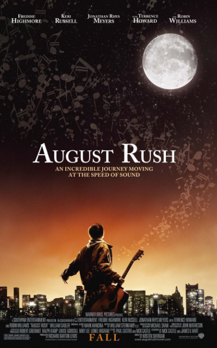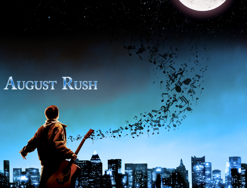 “어거스트 러쉬(2007)”는, 출생과 동시에 부모와 생이별한 아이가 고아원과 길거리를 방황하다 음악을 통해 부모를 찾게 된다는 눈물겨운 감동스토리로, 포스터에 적힌 “음악은 사랑을 낳고, 사랑은 운명을 부른다!” 라는 짧은 문구가 이 영화 전체를 이끌고 있다.