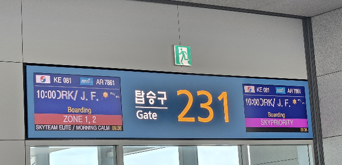 대한항공 KE081 보딩패스 시작. 지금보니 10시 출발이었구나.