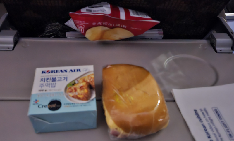 간식은 치킨불고기 주먹밥이랑 샌드위치를 준다. 생각보다 양이 적지는 않다.(먹다남은 과자가 보인다)