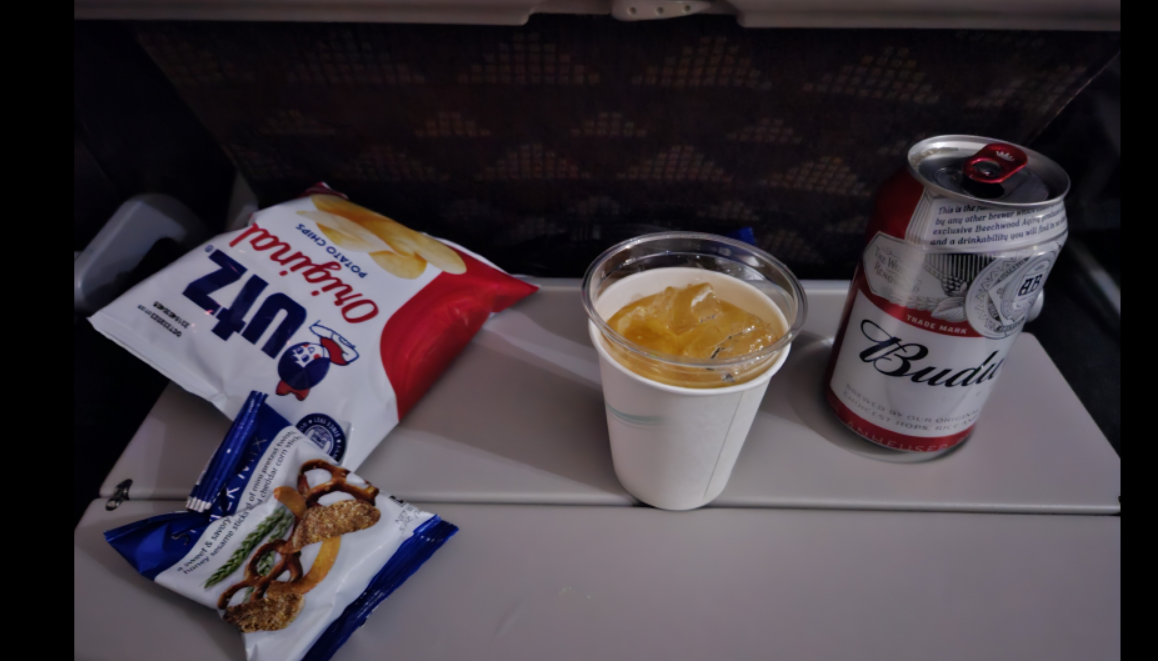 통로에 앉아서 화장실 가기 편해서, 맥주를 요청했다. 땅콩이 없다고 하길래 과자를 많이 가져다 주셨다.