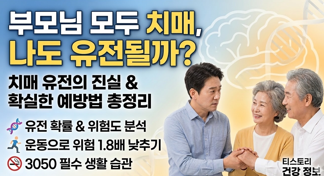 최근 MBN '바디 인사이트'에 출연한 아나운서 왕종근 님이 양가 부모님 모두 치매를 앓으셨다는 사연을 공개하며 치매 유전에 대한 불안감을 토로했습니다. 조부모 네 분이 모두 치매를 겪었다면 자녀 세대 입장에서는 막연한 공포를 느낄 수밖에 없는데요.