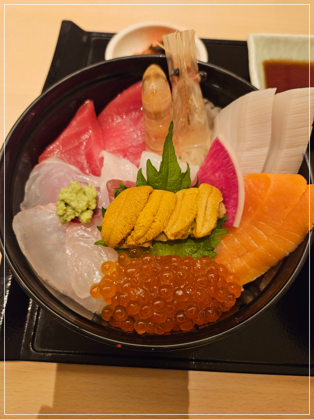 우니만 먹고 싶긴 했는데, 혹시 몰라서 그냥 여러가지 해산물을 먹을 수 있는 카이센동을 시켰다.