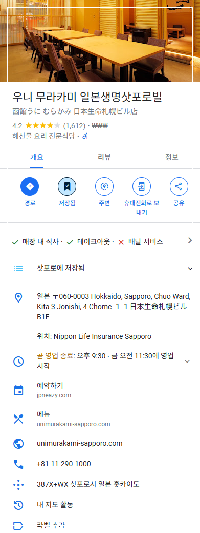 그렇게 해서 찾은 우니맛집은 삿포로역과 숙소 근처인