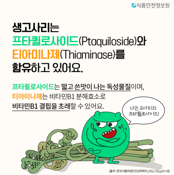 - 위험 성분: **'프타킬로사이드(ptaquiloside)'**라는 독성 물질은 암을 유발하고 다리 힘을 약하게 만드는 각기병의 원인이 되기도 합니다.