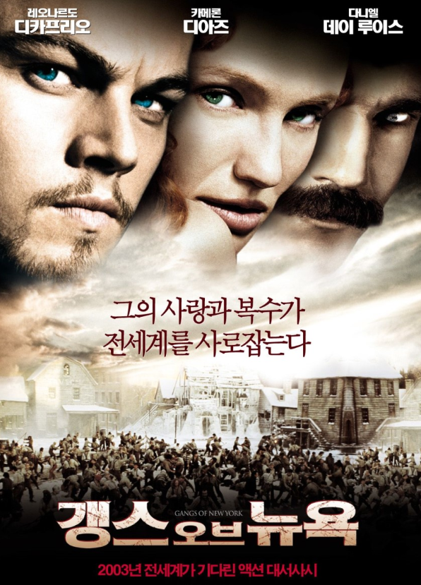 "갱스 오브 뉴욕(Gangs of New York)"은 마틴 스콜세지(Martin Scorsese) 감독의 2002년 역사 드라마 영화로, 19세기 중반 뉴욕시의 갱단 전쟁과 정치적 부패를 배경으로 합니다.