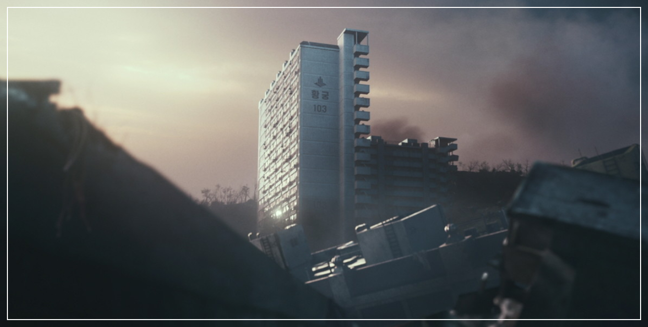 황폐한 서울의 풍경과 세부적인 아파트 내부 묘사는 현실감을 극대화합니다. 특히, 영석이 연설하는 장면에서 조명과 음향 효과는 긴장감을 배가시키며 관객을 압도합니다.