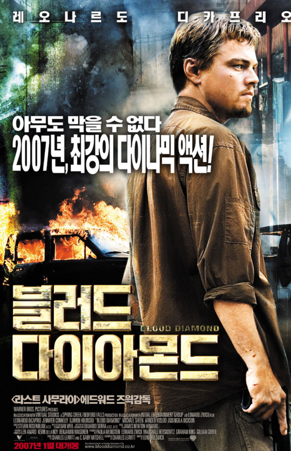 "블러드 다이아몬드"는 에드워드 즈윅 감독이 메가폰을 잡고, 레오나르도 디카프리오, 제니퍼 코넬리, 지몬 혼수가 주연을 맡은 2006년의 영화입니다. 이 영화는 1990년대 말 시에라리온 내전의 혼란을 배경으로 하며, 갈등 다이아몬드(혹은 블러드 다이아몬드)의 실제 문제를 중심으로 한 강렬한 드라마를 펼칩니다. 영화는 전쟁, 인권, 부정부패, 그리고 글로벌 경제 내에서의 아프리카의 위치 등 여러 주제를 다루며, 관객에게 깊은 인상을 남깁니다.