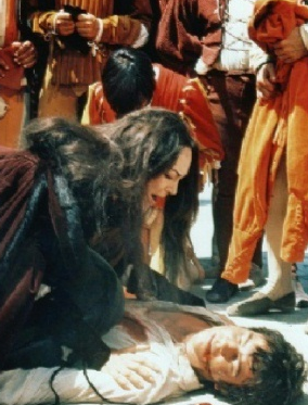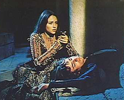 줄리엣이 약을 먹고 죽은 듯 보이자, 이 소식을 들은 로미오는 그녀가 실제로 죽었다고 믿고 무덤에서 독약을 마십니다.