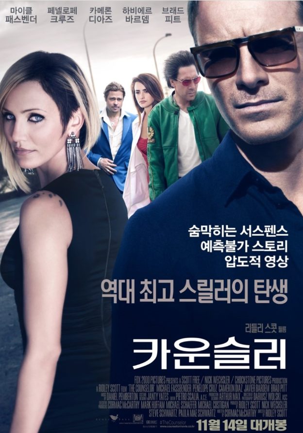 카운슬러"는 리들리 스콧 감독이 연출하고, 코미디언이자 작가인 코맥 맥카시가 각본을 집필한 2013년의 범죄 스릴러 영화입니다. 마이클 패스벤더, 페넬로페 크루즈, 카메론 디아즈, 하비에르 바르뎀, 브래드 피트 등 화려한 캐스팅으로 주목받았습니다. 이 영화는 욕심과 결정의 후과를 중심으로 한 어두운 테마를 탐구합니다.