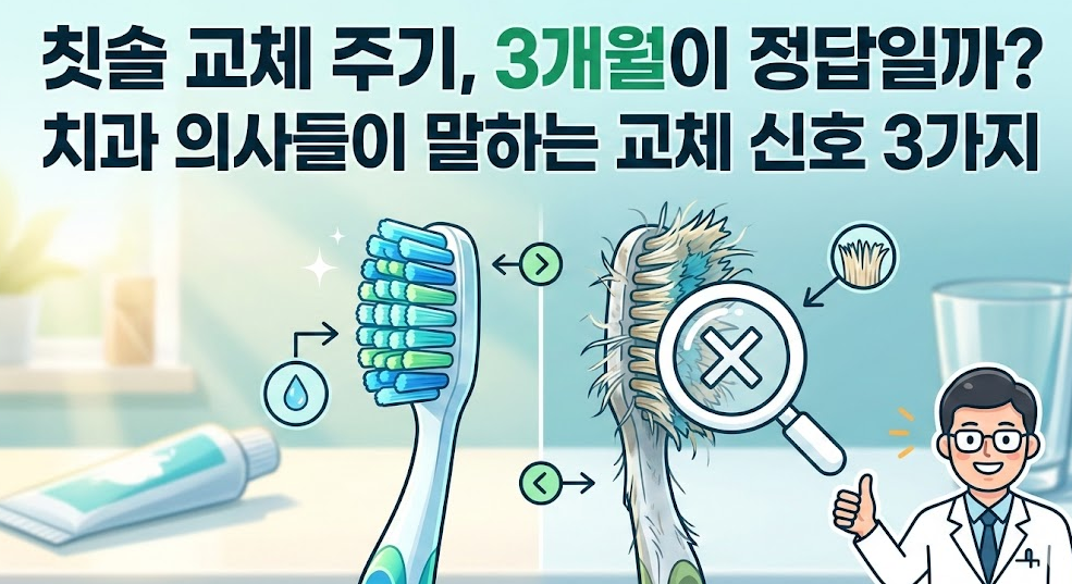 칫솔 교체 주기, 정말 3개월마다 바꿔야 할까요? 겉보기에 멀쩡해도 치과 의사들이 즉시 교체를 권장하는 위험 신호 3가지를 정리했습니다. 세균 번식을 막는 올바른 보관법과 교체 시기 체크리스트로 소중한 치아와 잇몸 건강을 지키세요.