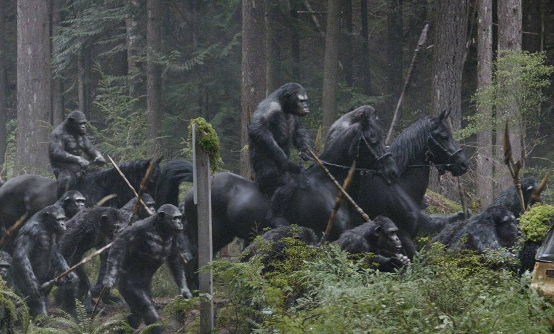 영화는 전 세계를 휩쓴 치명적인 바이러스 "시뮬라 바이러스"의 확산으로부터 10년 후의 미래를 배경으로 합니다. 인간 문명은 거의 붕괴 상태에 이르렀고, 살아남은 인간들은 고립된 생존자 그룹으로 전락한 상태입니다. 반면, 시저가 이끄는 유인원들은 샌프란시스코 근처의 숲에서 번성하며, 자신들만의 평화로운 공동체를 이루고 있습니다.