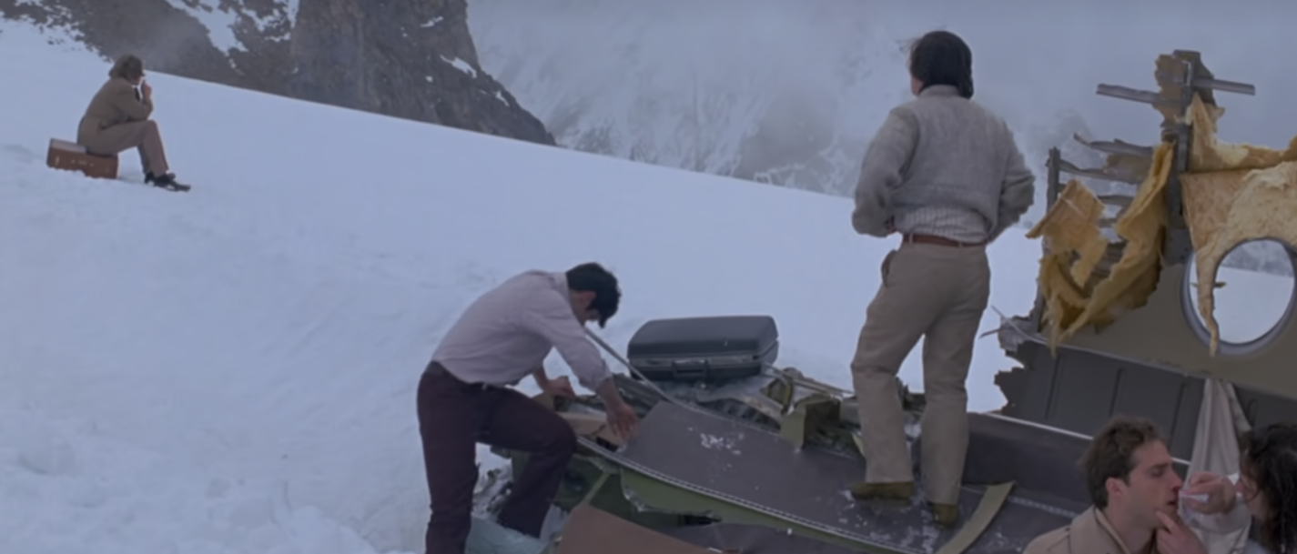 1972년 ‘남미 럭비 팀과 그 친지들이 칠레 인근에서 있을 시합을 위해 안데스 산맥을 넘고 있다. 이들은 서로 사진을 찍고 럭비공을 만지는 등, 보통 운동선수들의 쾌활한 모습으로 기내는 활기차다. 창 밖으로 보는 설산의 경치는 너무나 아름답다. 착륙 20분 전. 검은 구름 속으로 비행기가 자취를 감춘다. 산을 가까이 감상하기 위해 친구와 자리를 바꾸는 ‘난도(에단 호크)’.