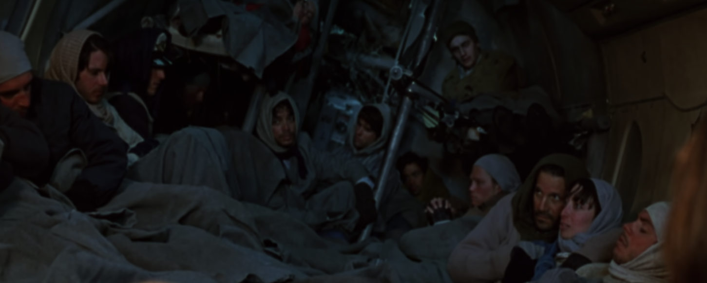 흔히 비행기 사고는 탑승자 전원 사망을 의미한다. 더구나 비행기 동채는 세 동강이 난 채 곳곳에 떨어져 있다. 시간이 지날수록 동료들은 추위와 배고픔에 서서히 하나씩 세상을 등지고 생존자들은 더 이상 자신들의 구조를 포기했다는 것을 알게 된다.