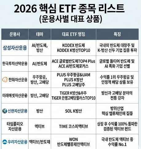 📍 2026년 시장을 씹어 먹는 테마별 대장 ETF 리스트