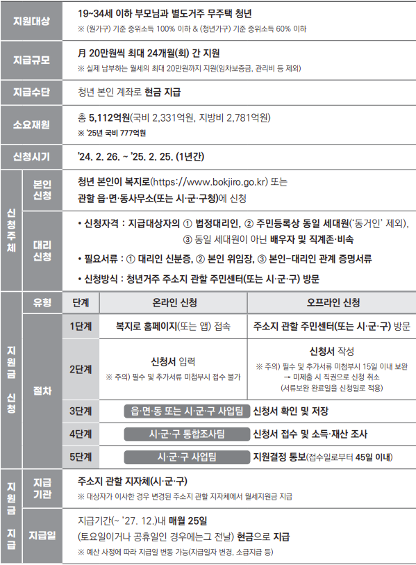 - LH 청년전세자금 대출, 청년 주거급여 등과 중복 지원이 제한될 수 있습니다.