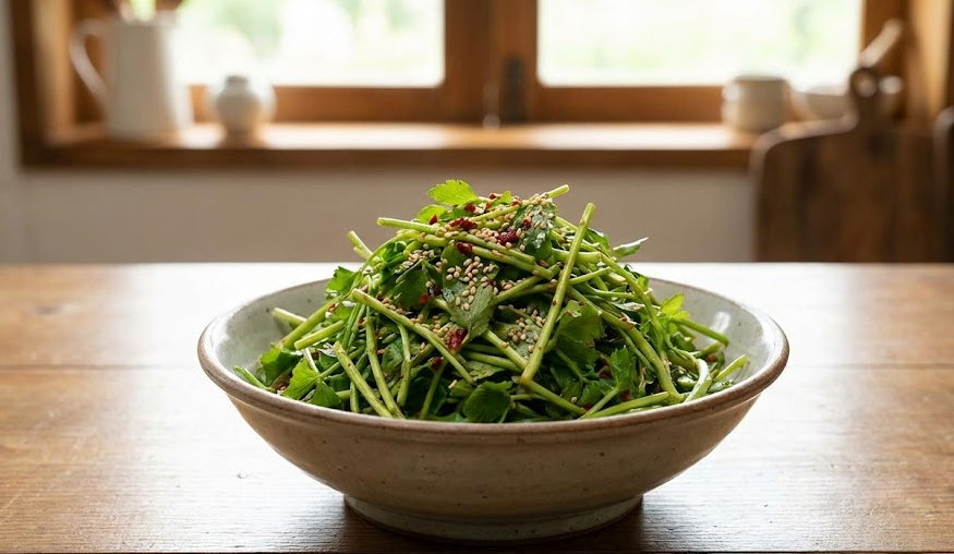 • 효능: 미나리는 대표적인 알칼리성 식품으로, 미세먼지를 통해 들어온 산성 노폐물을 중화해 줍니다. 특히 가래를 삭이고 기관지 염증을 완화하는 데 효과적입니다.